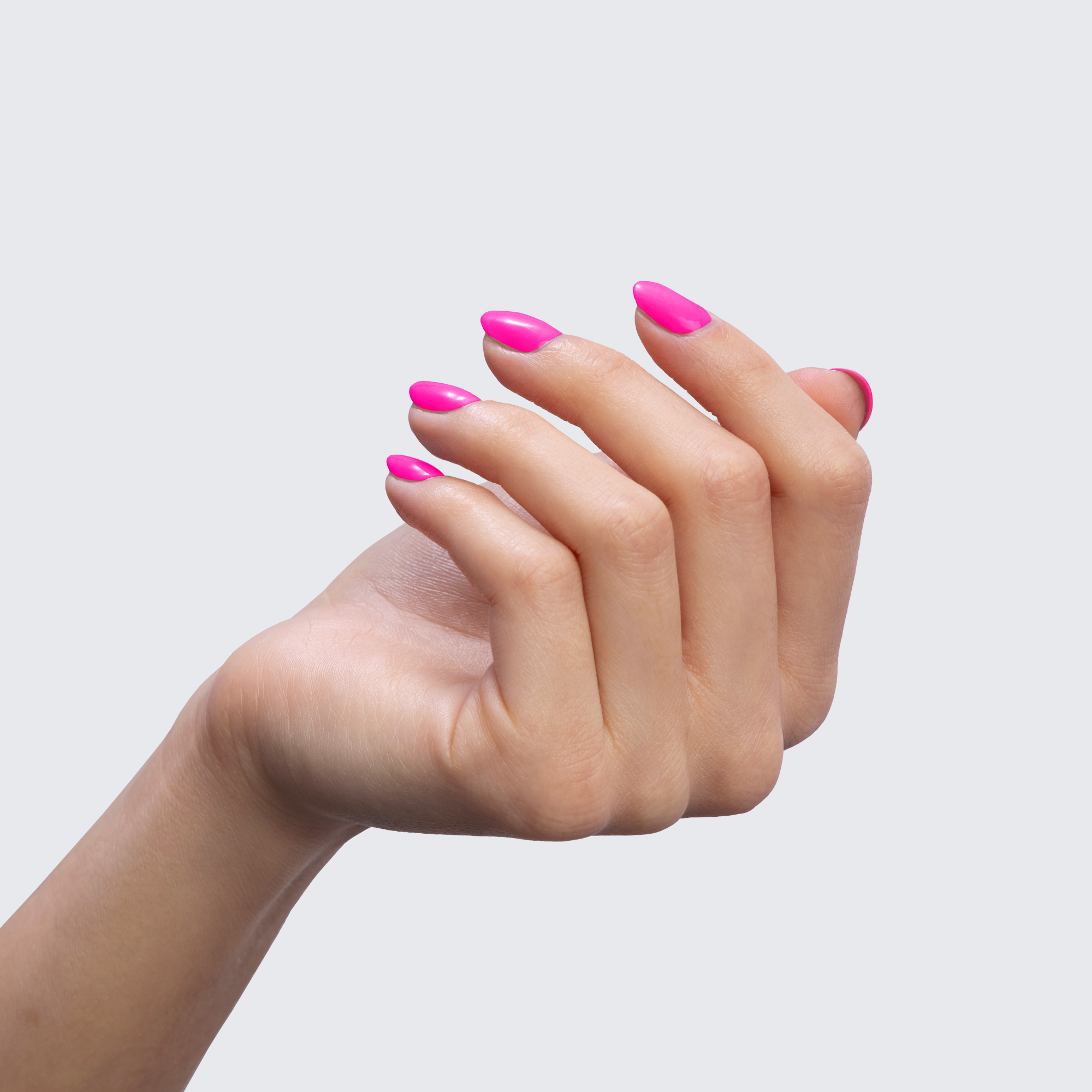 Neon fuchsia. Bright. Pearl finish. Warm undertone. Medium opacity.